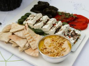 Meze je niečo podobné ako španielske tapas. V závislosti od toho, kde sa nachádzate, obsahuje meze rôzne miestne jedlá, ktoré môžu zahŕňať labne (jogurtový syr), baba ghanoush (korenené kocky baklažánu), muhammara (štipľavá korenená omáčka so strúhankou a vlašskými orechmi) a tabbouleh (bulgur, petržlen, mäta, paradajka, mušle, citrónová šťava a olivový olej).